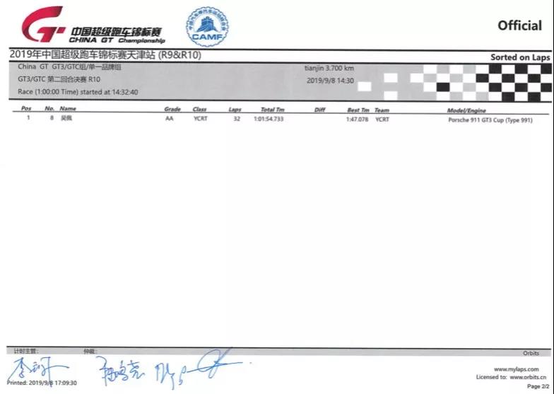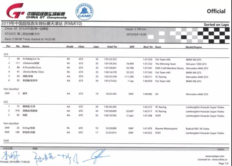 2019 China GT中國超級跑車錦標賽第十回合GT3、GTC、單一品牌組成績