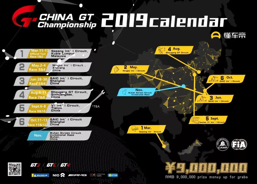 中國超級跑車錦標賽China GT,是經國家體育總局和中國汽車摩托車運動聯合會批準,列入年度全國體育競賽計劃及中國汽摩聯賽歷,并且注冊到FIA國際汽聯的賽事。China GT是中國汽車類最高級別賽事,匯集了中國最頂尖的實力強隊,國內外頂級賽車手近百名,全年現場觀眾38.8萬人次,電視及網絡觀眾超過7000萬。2019賽季包含6站比賽,總獎金9,000,000人民幣。